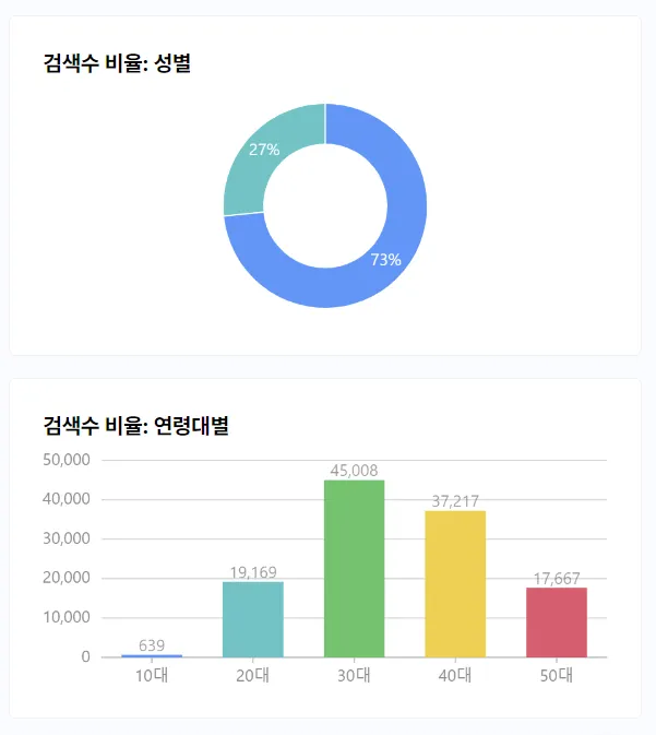 검색한 키워드의 성별 비율, 연령대별 비율을 확인할 수 있어요.