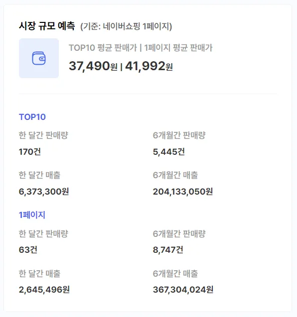 만약 내가 판매하는 상품의 가격보다 평균 판매가가 많이 낮다면, 경쟁 강도가 낮더라도 진입이 어려울 수 있어요. 이럴 때에는 관련 키워드에서 적합한 다른 키워드를 사용하는 것이 좋답니다.