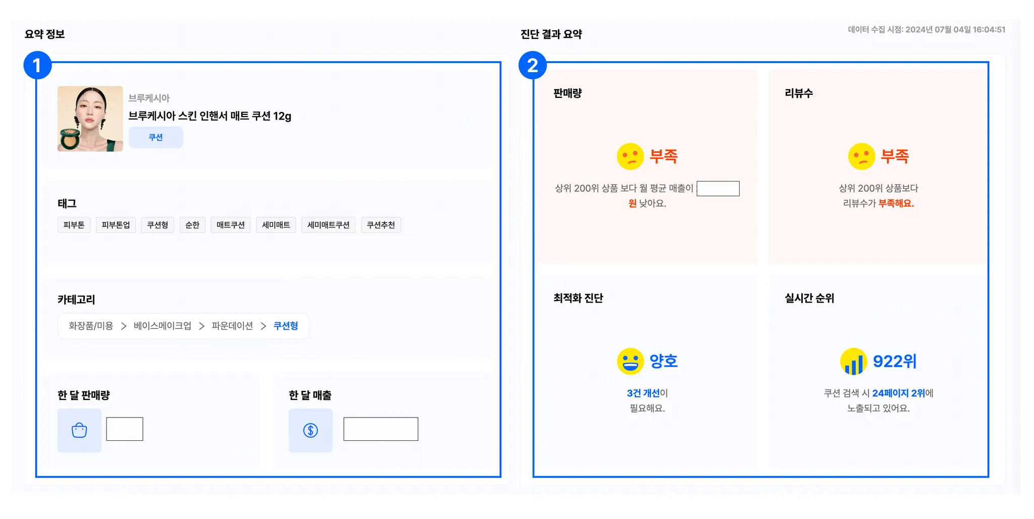 내 상품이 제대로 최적화되어 있는 것일까? 궁금할 때 사용하는 상품 진단 기능!