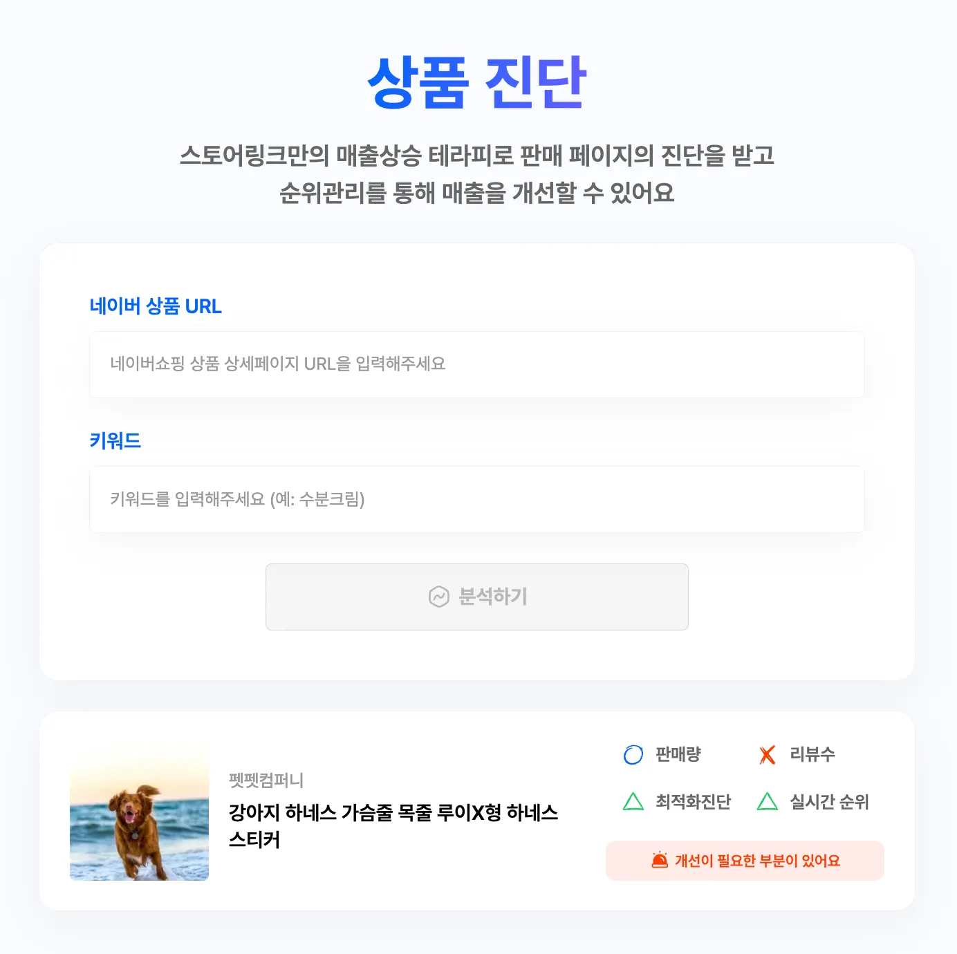 스토어링크의 상품 진단 기능이 셀러들의 매출 상승을 위해 더 강력하게 업데이트 되었습니다.