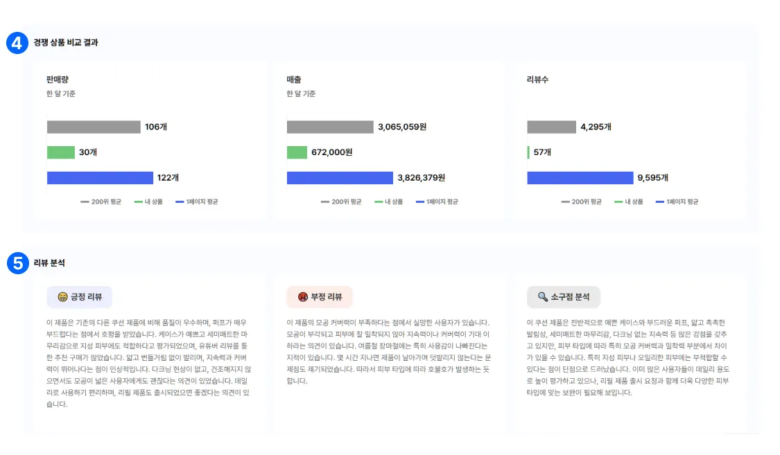 특히 리뷰 분석 영역을 추가하여, 내 상품의 장·단점을 한 눈에 파악할 수 있도록 업데이트하였습니다.